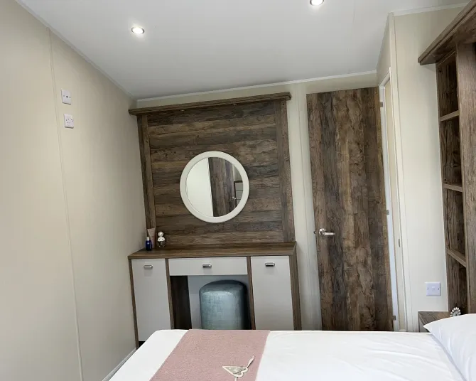 A timeless and stylish holiday home with all the comforts, including freestanding furniture, feature fireplace, integrated fridge-freezer, dishwasher and microwave, 2 shower rooms, a walk in wardrobe, double glazing and central heating. The outlook doors open on to front and side timber decking. Located on a fenced garden pitch, with generous patio and Astroturf area.